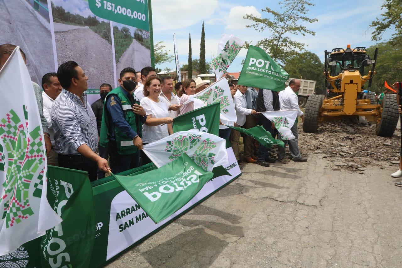 En continuidad a las acciones que emprende el Gobierno del cambio, para transformar a San Luis Potosí con obras que detonarán el desarrollo de las cuatro regiones y dinamizarán la movilidad en el Estado, este jueves el Gobernador Ricardo Gallardo Cardona, dio el banderazo de arranque a los trabajos de rehabilitación de un tramo de 35.2 kilómetros de la carretera San Martín Chalchicuautla-Tanquián de Escobedo, en los que se aplicará una inversión histórica sin precedentes por 151 millones de pesos.