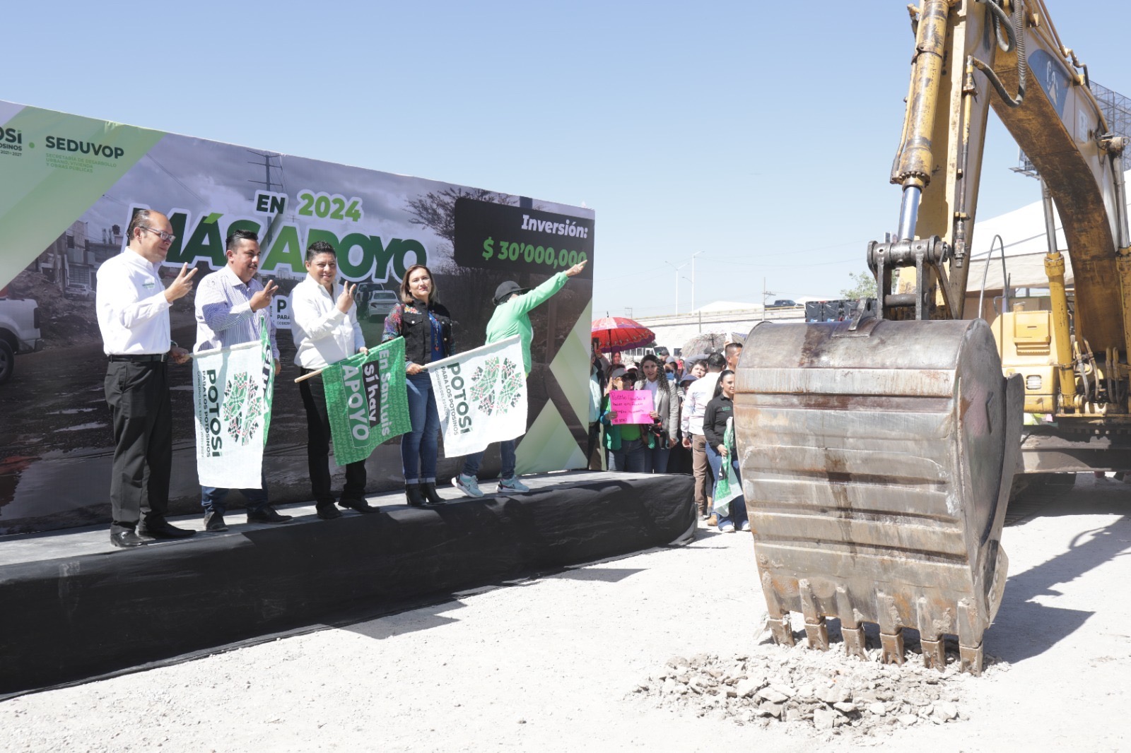 Gallardo Cardona, explicó que, en solo dos años su Gobierno ha realizado lo que no pudo la herencia maldita en 30, como la construcción de alternativas para aligerar el tráfico hacia la zona industrial, el rescate e iluminación del Circuito Potosí e infraestructura para mejorar la conectividad y la calidad de vida en las cuatro regiones del Estado, “y todavía seguiremos llevando apoyo a las familias potosinas”.