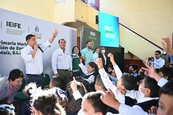 Ciudad del Maíz, San Luis Potosí.- El Gobernador de San Luis Potosí Ricardo Gallardo Cardona, nuevamente cumplió con su promesa de mejorar las condiciones de las escuelas en San Luis Potosí con la finalidad de que niñas, niños y jóvenes tengan más oportunidades de futuro, al entregar la escuela primaria Mariano Moctezuma, en el municipio de Ciudad del Maíz, que beneficiará a más de 430 estudiantes; informó que en 2023 los recursos del ramo 28 y 33 tendrá un incremento de más del 19 por ciento, y ascenderán a 140 millones de pesos, con 22 millones de pesos más.