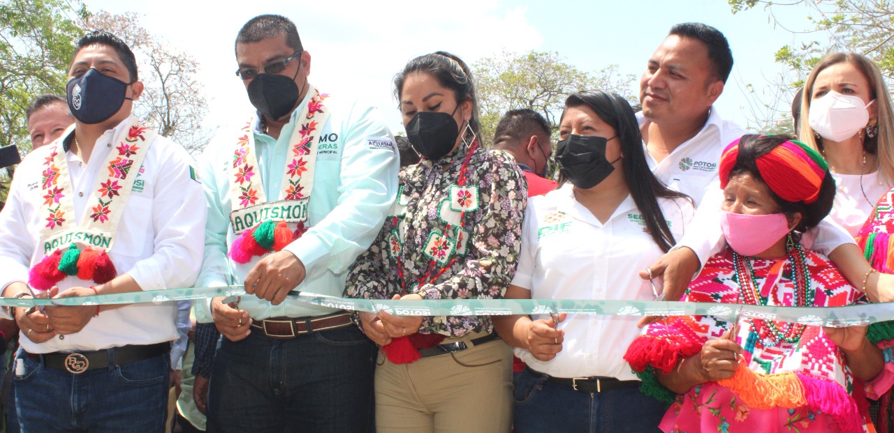 - Durante su gira de trabajo por la Huasteca, el Mandatario inauguró la obra con una inversión de 20 millones de pesos que incluyó concreto hidráulico estampado y asfáltico.