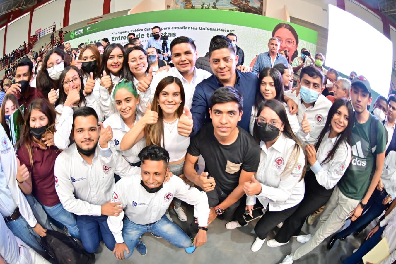 El Gobernador Gallardo Cardona afirmó que el objetivo es beneficiar a los más de 62 mil alumnas y alumnos universitarios que forman parte de la comunidad universitaria en San Luis Potosí, para luego, ampliar el programa a todos los niveles educativos.