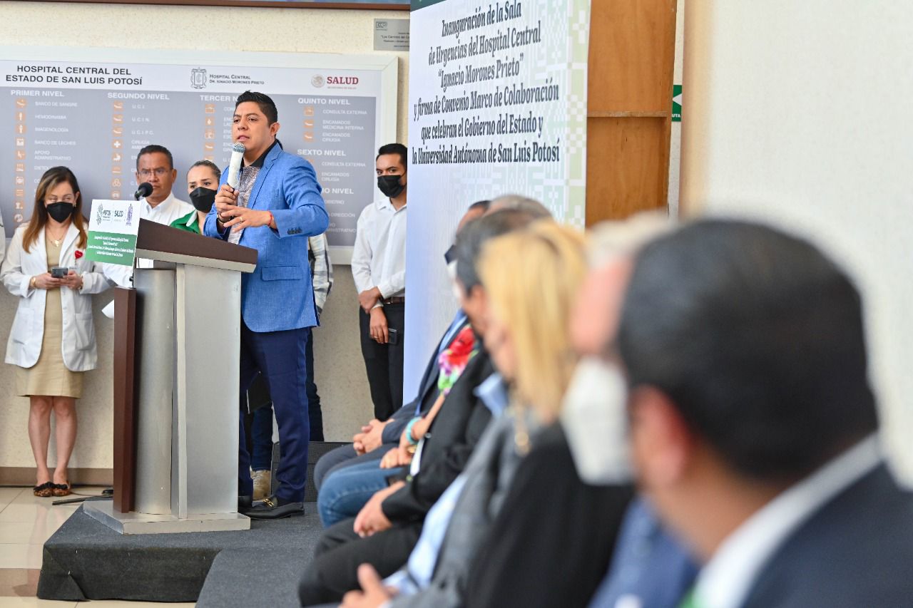 Al inaugurar el área de urgencias del Hospital Central “Doctor Ignacio Morones Prieto”, el Gobernador Ricardo Gallardo Cardona, informó que en septiembre entregará las instalaciones completamente equipadas, con 250 camas, y atención de hemodinamia, con una inversión cien por ciento estatal de más de 100 millones de pesos, “los 100 millones de pesos mejor invertidos, porque las y los potosinos no podían esperar más para una atención digna”.