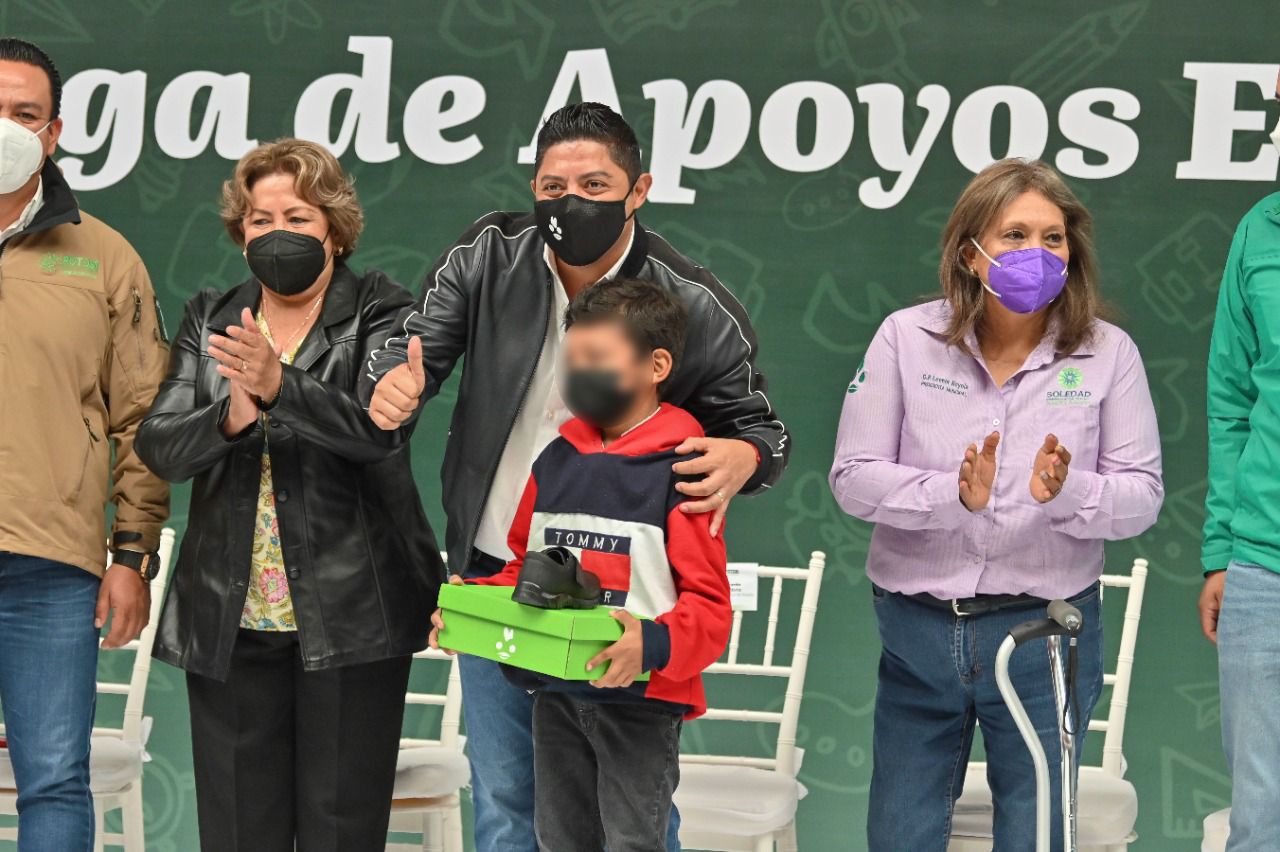 • Arrancó en Soledad de Graciano Sánchez la entrega de mochilas, útiles escolares y zapatos, que beneficiará a 35 mil jóvenes de este municipio