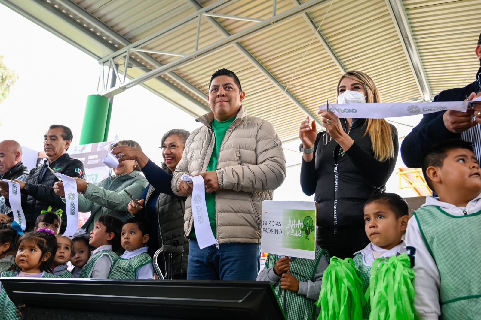 • El Gobernador del Estado, entregó en Soledad de Graciano Sánchez la construcción de un nuevo jardín de niños y arrancó la rehabilitación de la avenida Genovevo Rivas Guillén