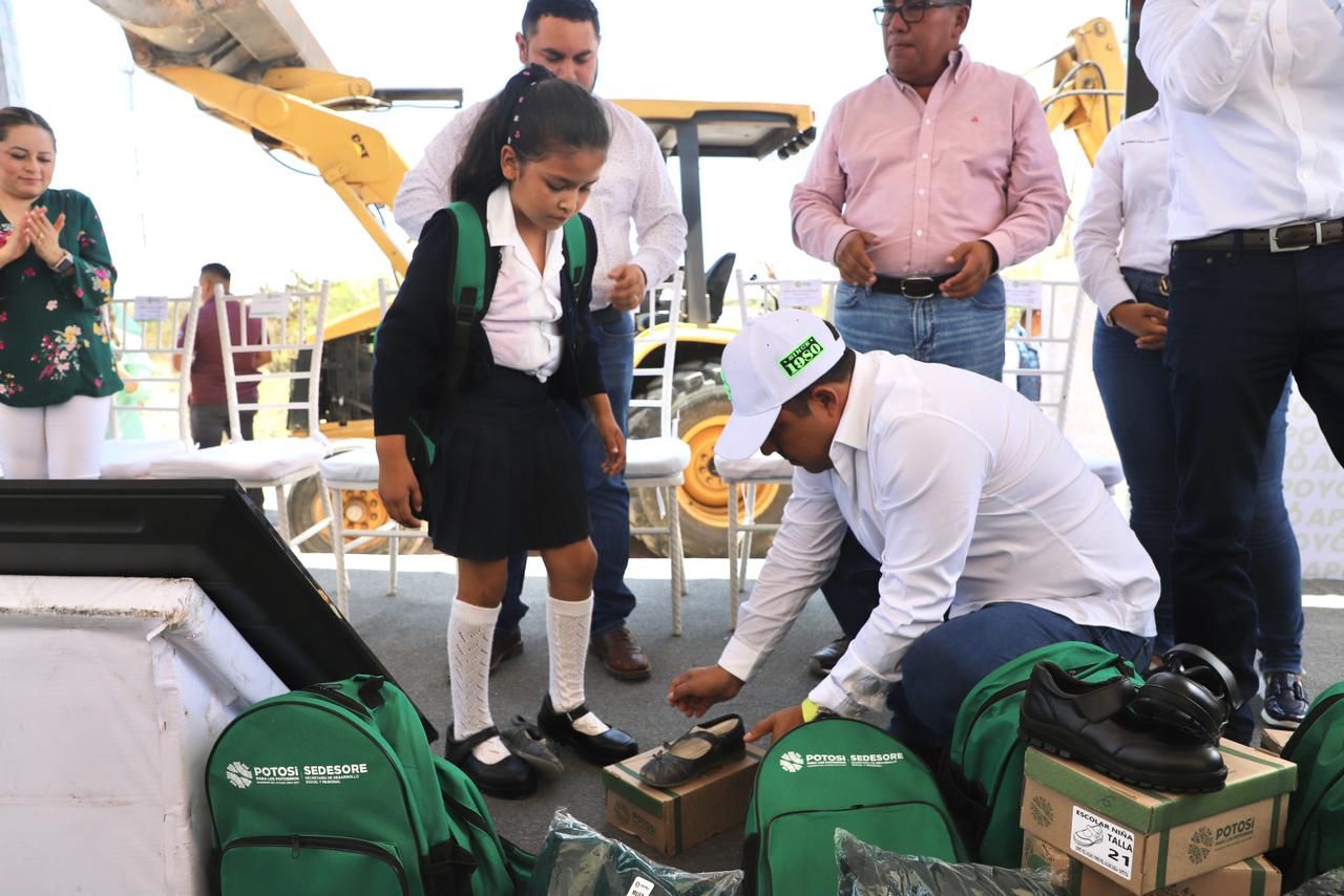 • En apoyo a la educación y la movilidad, el Gobernador entregó uniformes, zapatos, útiles y mochilas e inició la reconstrucción del camino Morterillos-El Colorado