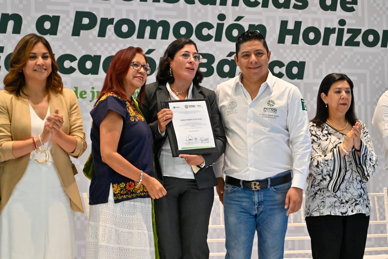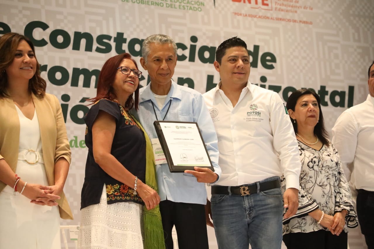 Para reconocer la vocación, dedicación y compromiso de mil 779 docentes estatales y federales, el Gobernador de San Luis Potosí Ricardo Gallardo Cardona, acompañado de la titular de la Secretaría de Educación Pública (SEP), Leticia Ramírez Amaya, tras una convocatoria abierta y transparente, entregaron constancias de incorporación a Promoción Horizontal en Educación Básica, por 39 millones de pesos.