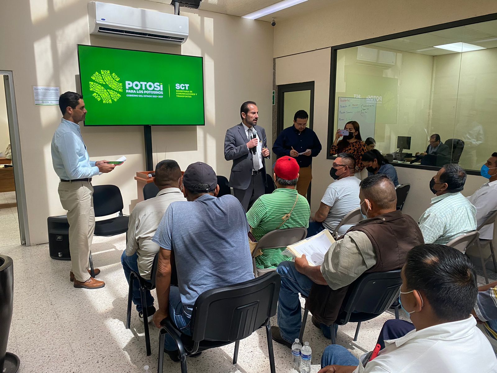 En apego a la instrucción del Gobernador del Estado Ricardo Gallardo Cardona, de ofrecer un gobierno abierto y atento para todas y todos, el titular de la Secretaría de Comunicaciones y Transportes (SCT), Leonel Serrato Sánchez atendió las inquietudes de integrantes del gremio taxista de la zona Huasteca.