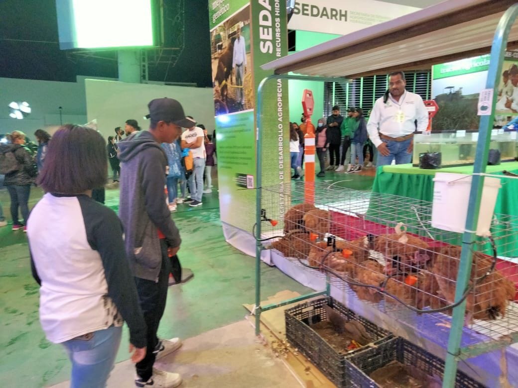 El módulo interactivo de la Secretaría de Desarrollo Agropecuario y Recursos Hidráulicos (Sedarh) en el pabellón de la feria de Servicios impulsada por el Gobierno del Cambio en la Feria Nacional Potosina (Fenapo), fue un sitio de atracción para miles de familias asistentes, quienes pudieron conocer los procesos productivos de distintas especies, como abejas, peces y aves, así como los diversos servicios en línea para productores del campo.