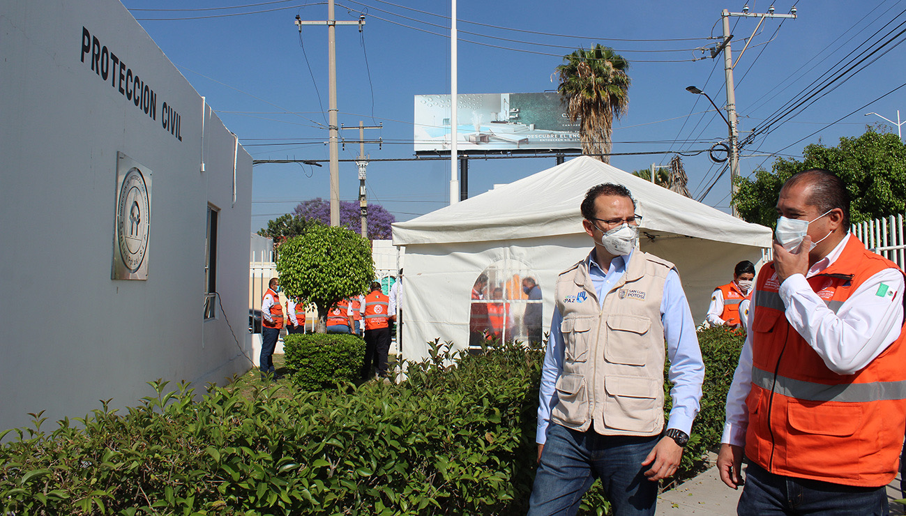 En un recorrido para supervisar el equipo e instalaciones de que dispone la Dirección de Protección Civil para atender los riesgos inherentes al coronavirus, así como a cualquier emergencia de otra índole que se pudiera presentar, el alcalde Xavier Nava Palacios agradeció al personal de la dependencia la disposición que han mostrado ante la emergencia sanitaria, que le ha valido a San Luis Potosí el reconocimiento como uno de los municipios que están a la vanguardia nacional en acciones preventivas contra el COVID 19.