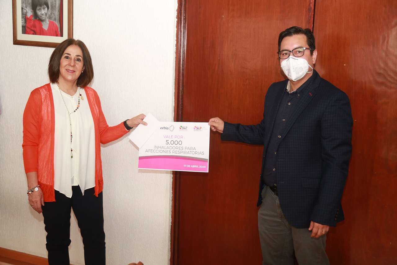 La empresa Orbia Advance Corporation entregó un donativo de 5 mil inhaladores para afecciones respiratorias, con un valor de 97 mil 500 pesos, a través del Sistema Estatal para el Desarrollo Integral de la Familia (DIF), los cuales se sumarán a equipo y suministros para enfrentar la emergencia sanitaria nacional por la presencia del Covid-19 en San Luis Potosí.