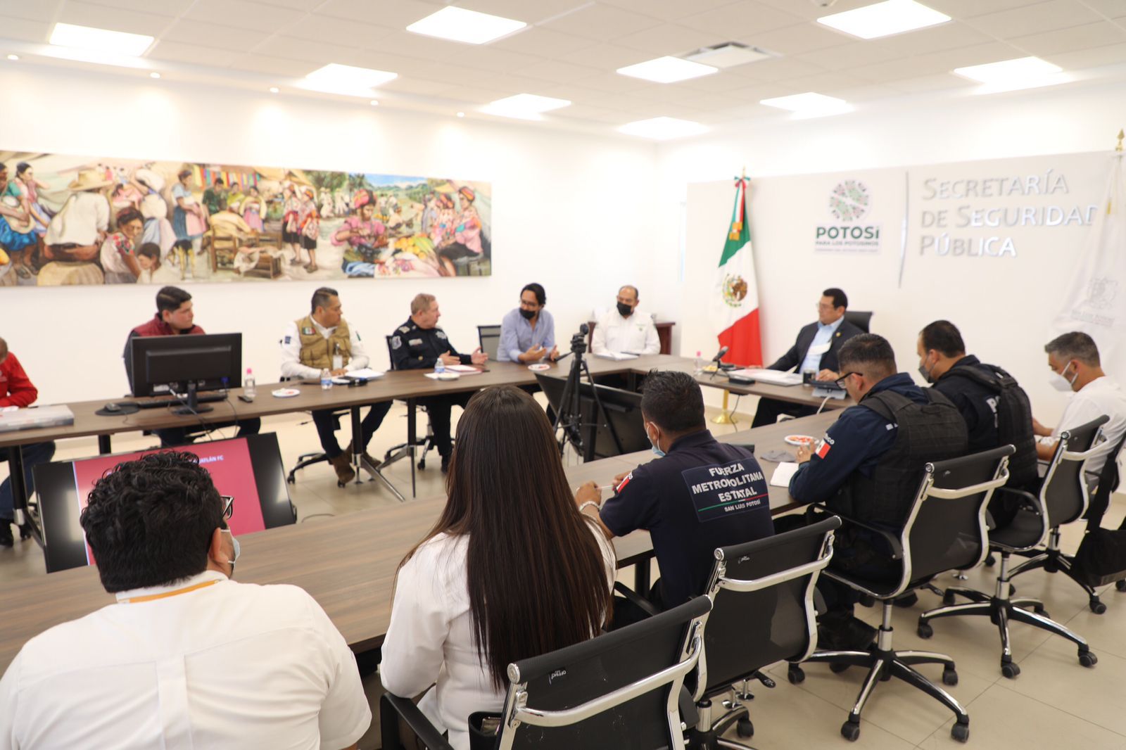 SAN LUIS POTOSÍ, S.L.P.- A fin de trazar las medidas de prevención necesarias para garantizar un sano esparcimiento a las y los aficionados que asistan al Estadio “Alfonso Lastras Ramírez” a presenciar el partido entre el Atlético de San Luis vs. Mazatlán, autoridades de la Secretaría de Seguridad Pública del Estado (SSPE), se reunieron con directivos del equipo de futbol potosino, así como autoridades de seguridad del ámbito Estatal y Municipal.