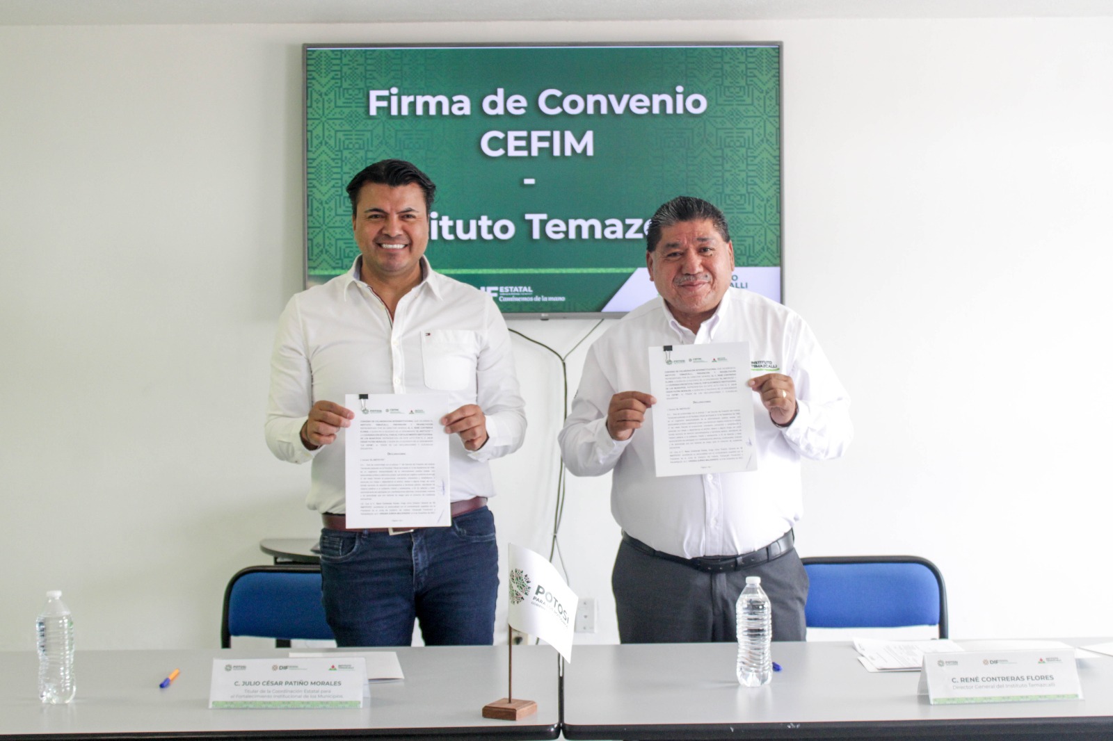 En cumplimiento del compromiso de atender a los 58 municipios, como lo ha instruido el Gobernador de San Luis Potosí, Ricardo Gallardo Cardona, el Instituto Temazcalli y la Coordinación Estatal para el Fortalecimiento Institucional de los Municipios (CEFIM), firmaron un convenio que permitirá impartir talleres y pláticas en prevención y rehabilitación de adicciones, trastornos de la conducta alimentaria y cuidado de la salud mental, en las cuatro regiones del Estado.
