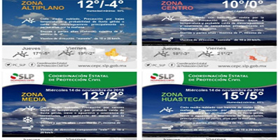 • No se reportan afectaciones por bajas temperaturas en SLP.