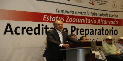 Alejandro Cambeses Ballina titular de la Secretaría de Desarrollo Agropecuario y Recursos Hidráulicos (SEDARH), explicó que la dependencia estatal, en conjunto con SAGARPA y productores pecuarios, de la mano con las Uniones Ganaderas de la Huasteca y de San Luis Potosí, lograron que la que la USDA realizará las supervisiones requeridas para cambiar el estatus sanitario en la campaña contra la tuberculosis bovina.