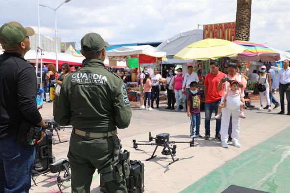 Igualmente, padres y madres de familia fueron testigos del sobrevuelo de estos herramientas tecnológicas en la extensión de la Feria, generando un acercamiento entre la ciudadanía y las autoridades estatales de seguridad.