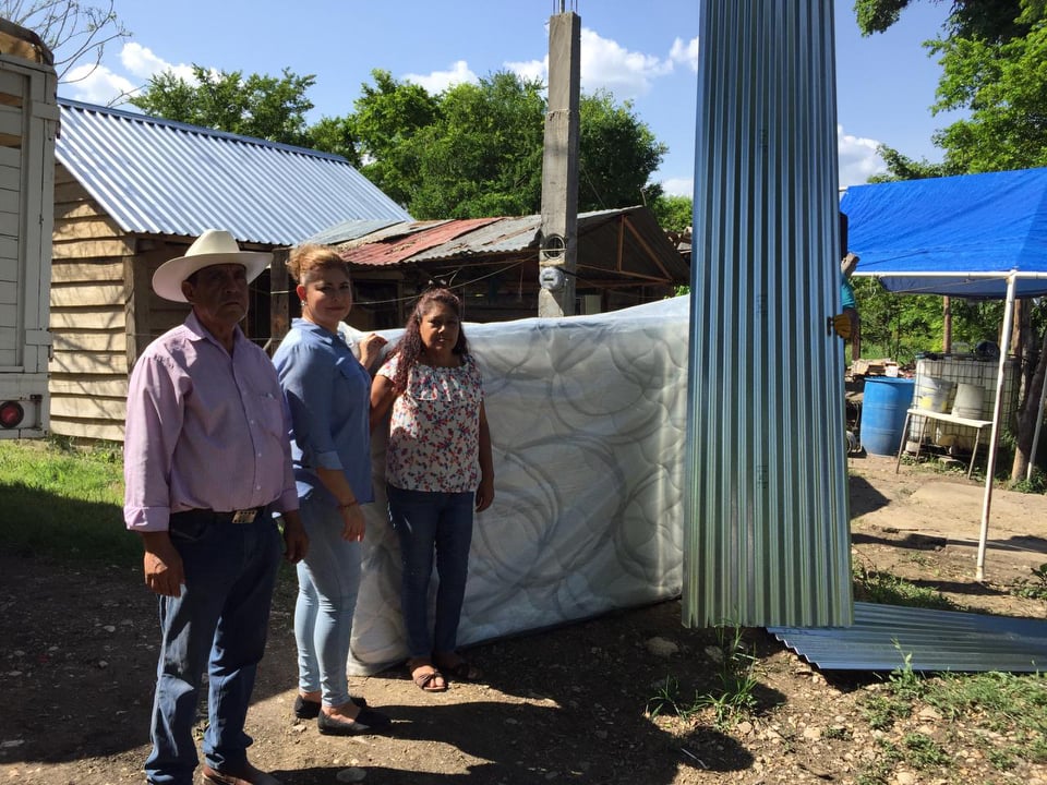 Tamasopo. S.L.P.- Como parte del compromiso que hiciera con las familias que resultaran afectadas por la tromba que se registró en días pasados, el día de hoy la alcaldesa Rosalba Chavira Baca hizo entrega de colchones, paquetes de láminas, alfardas para que lleven a cabo la rehabilitación de sus viviendas.