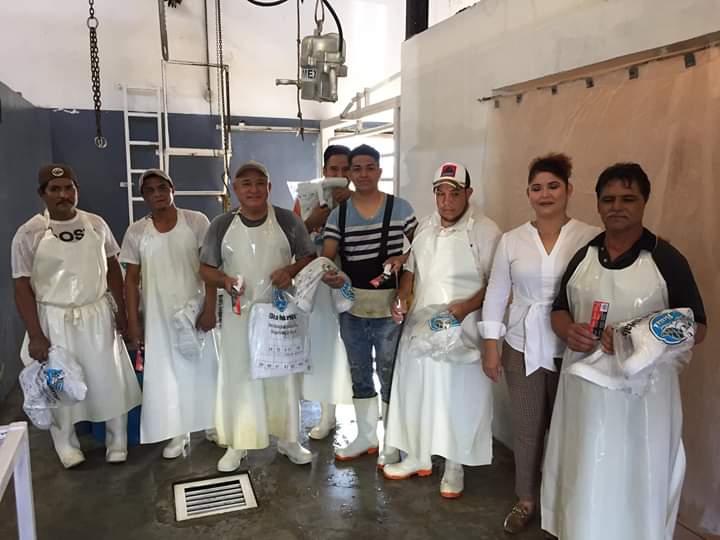 La mandataria señaló que existe el compromiso de esta administración de poder brindar un buen servicio a los tablajeros es por ello que visito el rastro municipal para ver los trabajos realizados ademas se le apoyo a los trabajadores con botas y cuchillos para que puedan realizar sus trabajos.