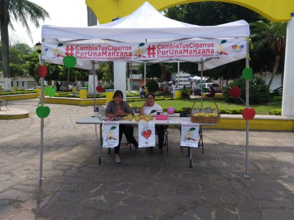 La funcionaria menciono que el día de ayer se instaló un módulo en donde el objetivo era que las personas que tienen la adición del consumo del tabaco pudiera cambiar un cigarro por una manzana en donde el mensaje que se les dio fue que es mejor consumir un producto nutritivo y no uno nocivo para la salud, por lo que se tuvo buena respuesta por parte de la población que se acercó a realizar el canje.