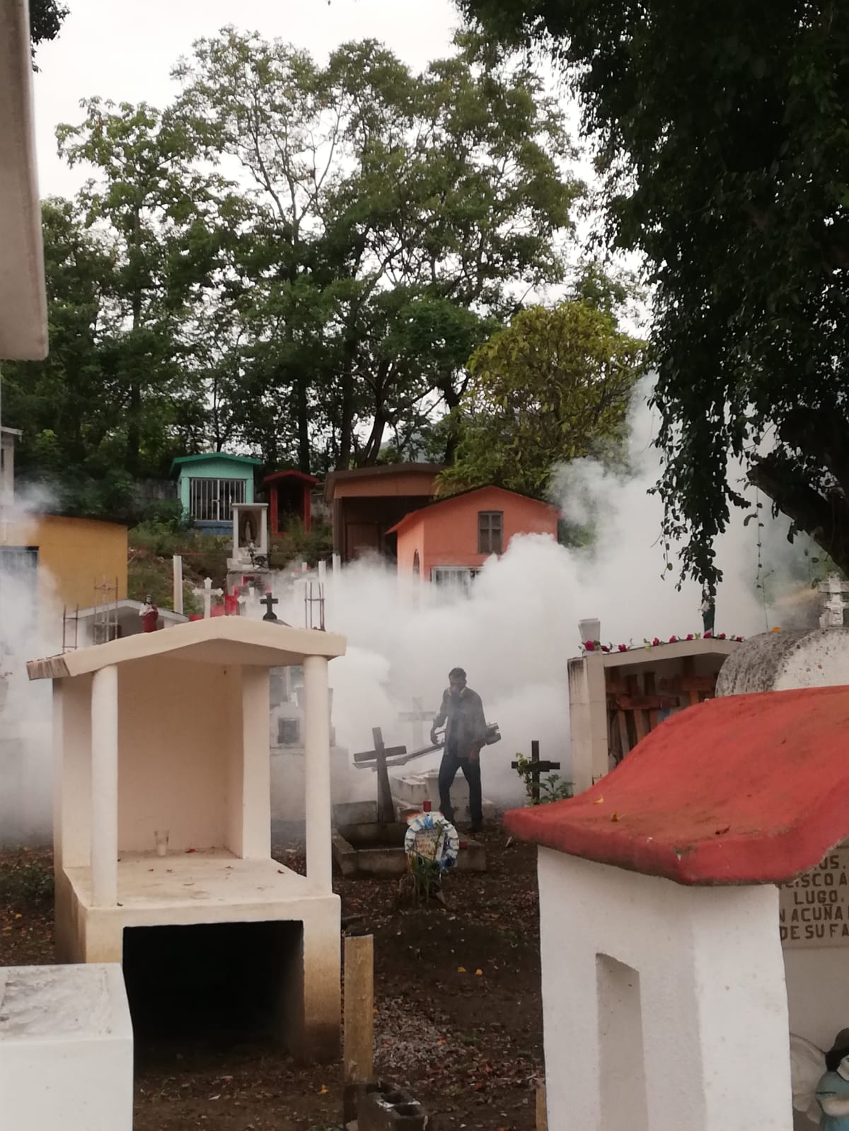 Informó que en los panteones de la localidad del El Chino, Agua Buena, Tambaca, Damian carmona y la Cabecera se realizó la limpieza que consiste en el chapoleo, descacharrización y fumigación con el objetivo de que no sea un foco de infección para las personas que acuden a visitar a sus fieles difuntos, por lo que les hace la invitación a las personas que acudan a estos lugares a que eviten tirar basura para no generar nido de mosquitos que puedan ser portadores del dengue, zika o chikungunya.