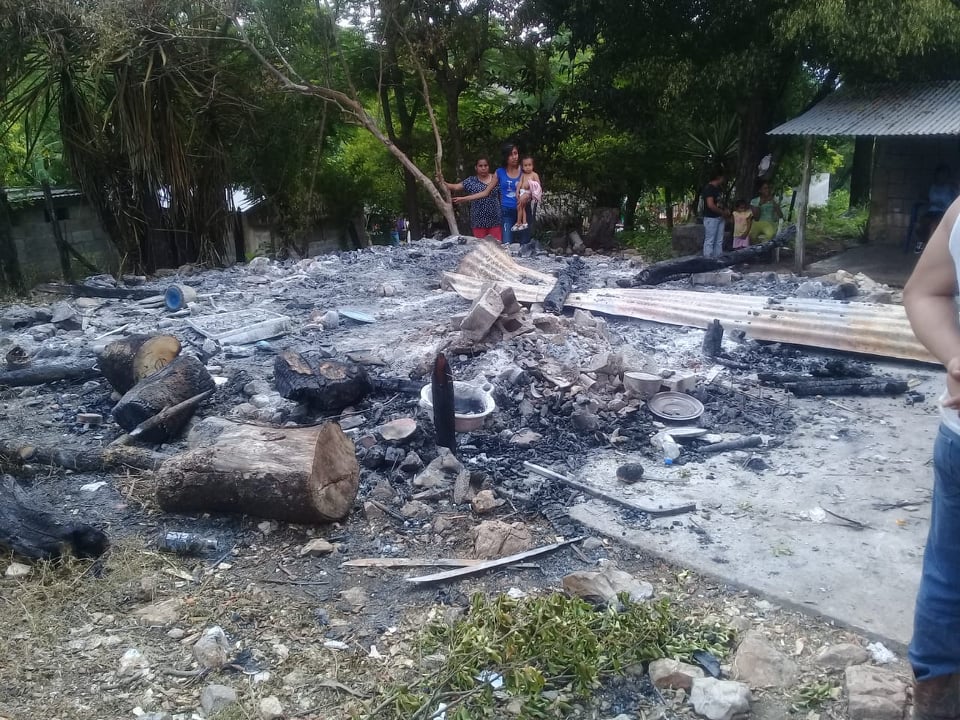 Tamasopo. S.L.P.- Una familia de la comunidad de Campamento Alfa-Los Cuates sufrieron un incidente en donde perdieron todo su patrimonio esto después de haberse registrado un incendio en su vivienda la cual era construida de madera y lamina, afortunadamente solo se registraron pérdidas materiales.