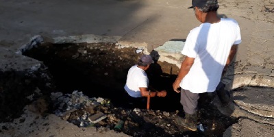 Tamasopo. S.L.P.- Debido a un problema en el sistema de drenaje en la calle Javier Mina y Aldama personal del Departamento de Agua Potable llevaron a cabo la rehabilitación de este desperfecto el cual afectaba a gran parte de la zona centro, lo anterior lo dio a conocer Eduardo Briones Castellanos director de este Departamento Municipal.