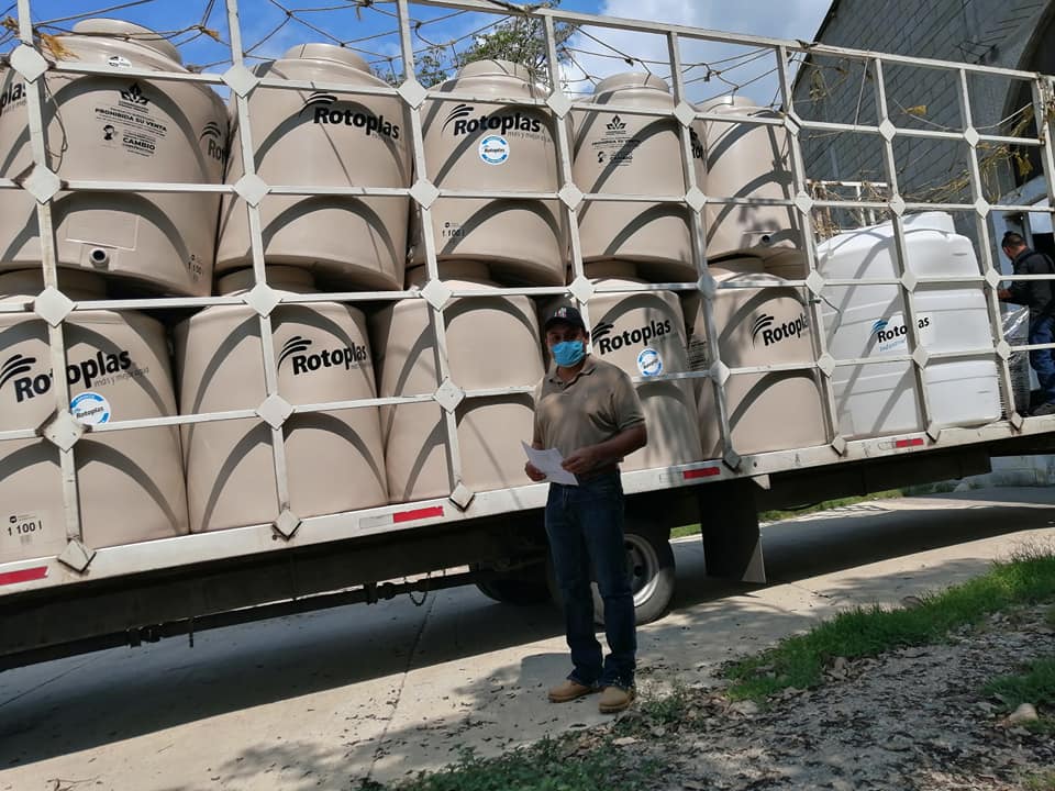 El funcionario dijo que debido a la contingencia por el Coronavirus en esta ocasión se estarå haciendo la entrega de estos depósitos de agua hasta los domicilios de las personas que los solicitaron, indicó que se ha logrado apoyar con diversos beneficios a mas de 4 mil familias de las diversas comunidades.