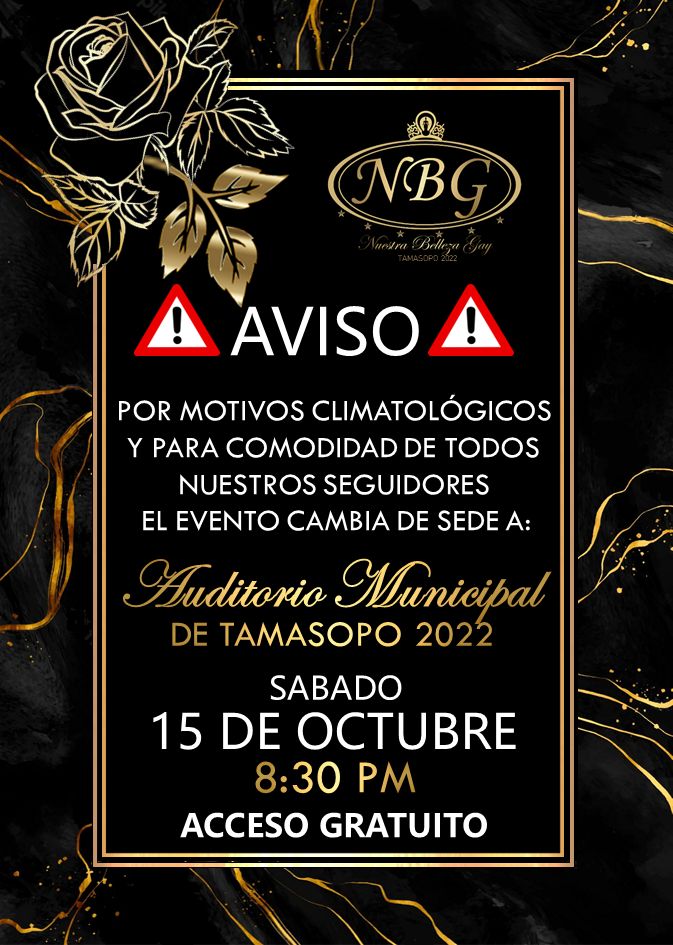 Tamasopo.S.L.P – Por motivos climatológicos el evento de Nuestra Belleza Gay 2022 cambió de sede, inicialmente se había programado en la plaza principal pero debido a que se pronostican lluvias para este día se está cambiando el lugar.