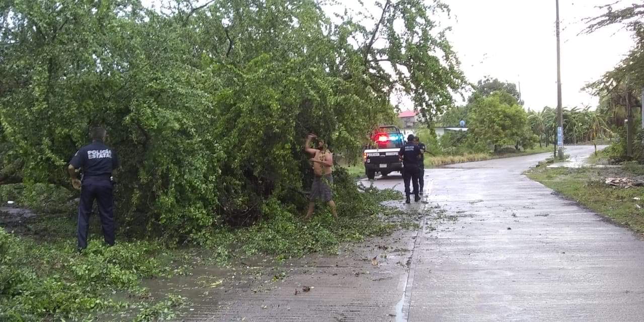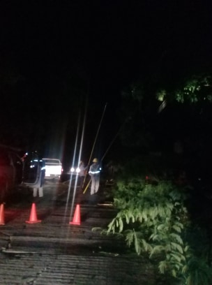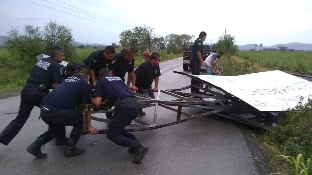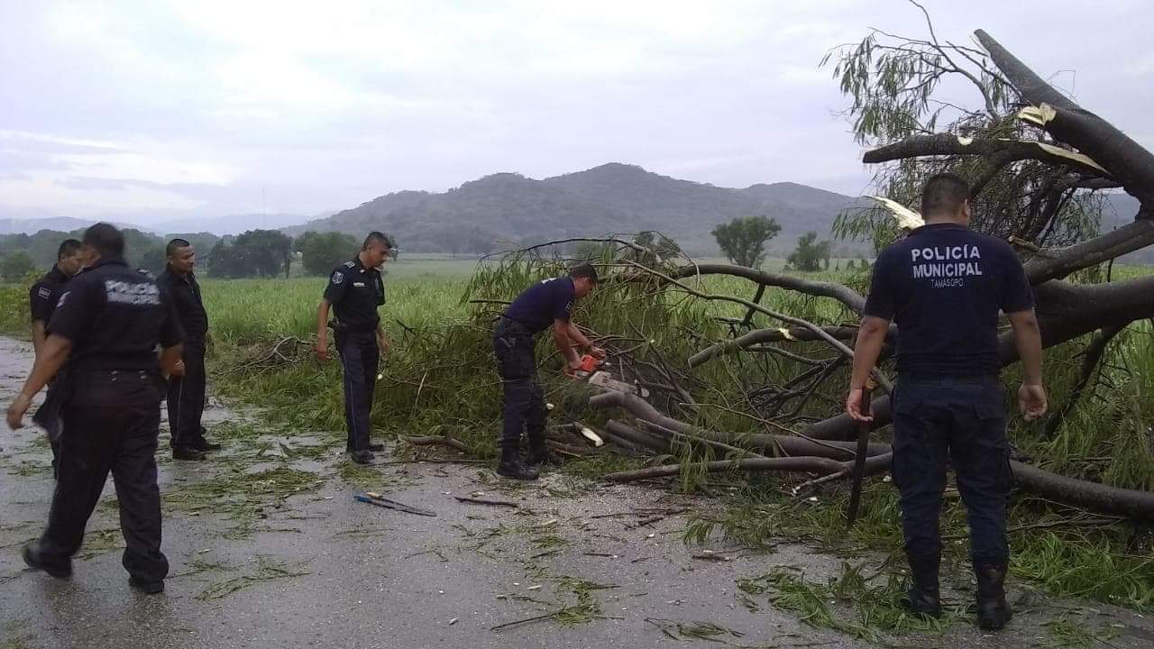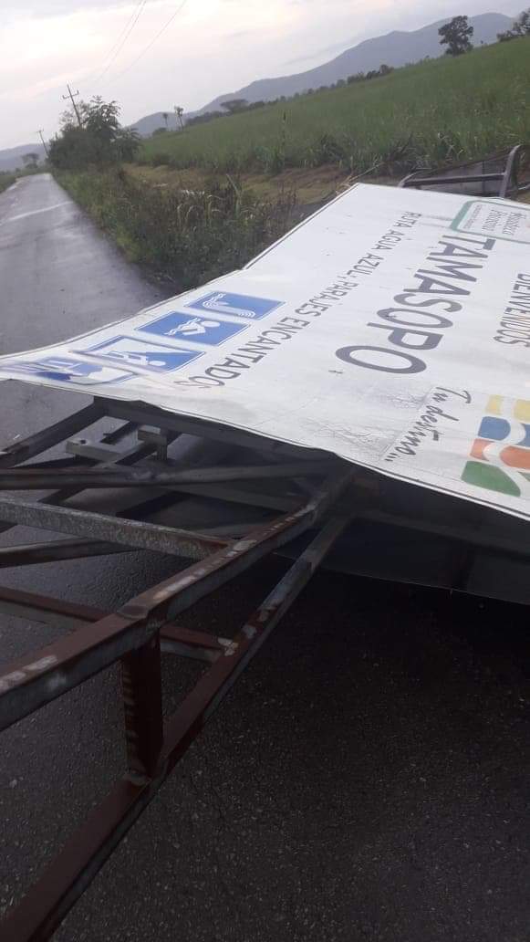Tamasopo.Ā S.L.P.- La tarde de hoy se registro una tromba con fuertes vientos y lluvia que azoto a la delegación de Tambaca, Agua Buena y Tamasopo Ā derrumbando Ć”rboles, techos de lĆ”mina y letreros, ademĆ”s de que dejo sin luz las localidades antes mencionadas debido ala caĆda de varios postes de luz, hasta el momento continĆŗan los trabajos de reparación por parte del personal deĀ la CFE, personal de Obras PĆŗblicas, Protección Civil y Seguridad PĆŗblica Municipal continĆŗan con la supervision de los daƱos ocasionadosĀ por este fenómeno climatologĆco.