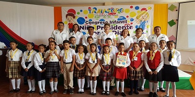 Tamasopo. S.L.P.- La niña Valeria Nájera Gómez de la Esc. Prim. Juan Escutia de la Delegación de Damián Carmona fue la ganadora del concurso Niño Presidente por un día que el departamento de Educación realizó el día de hoy en donde participaron 18 niños en este evento.