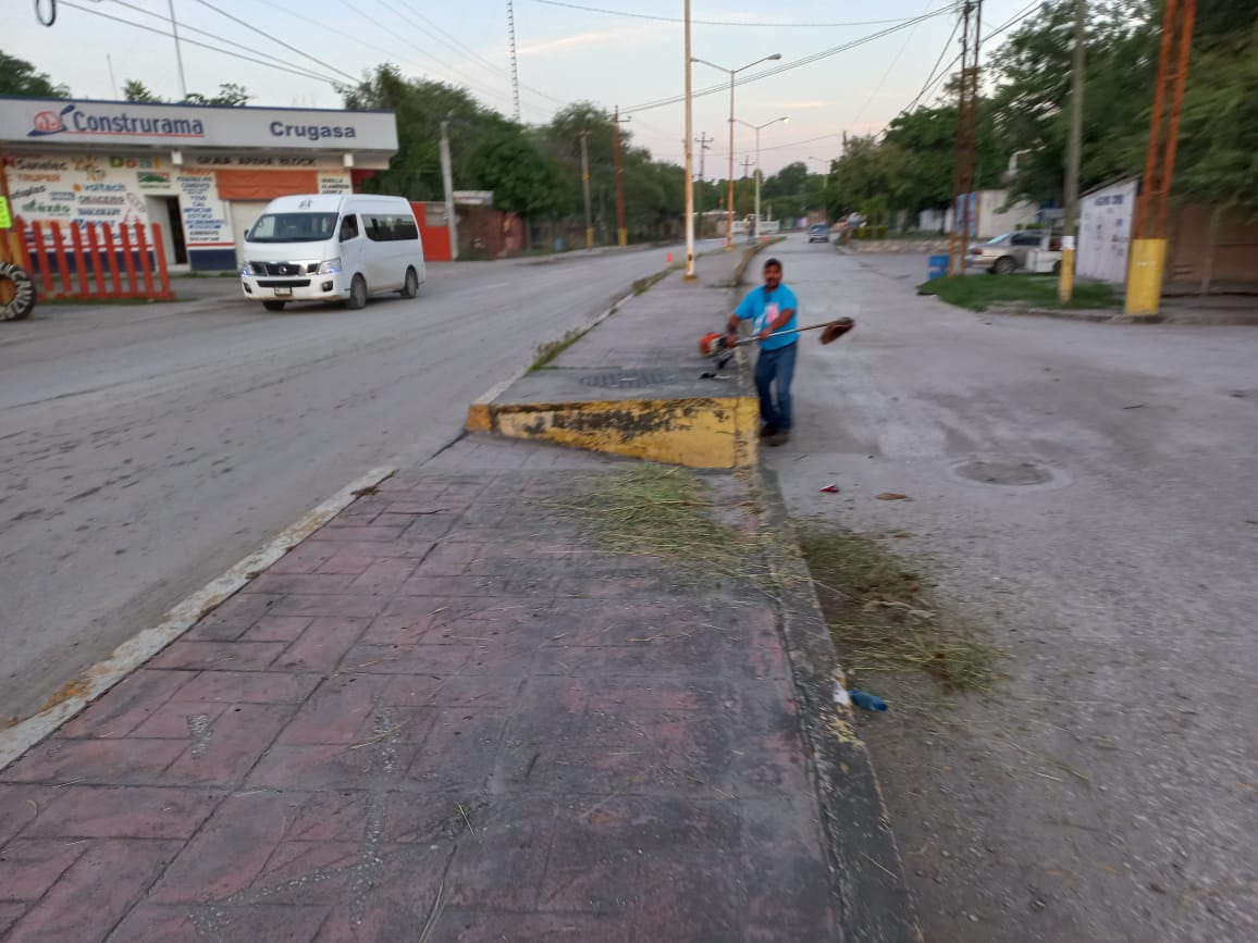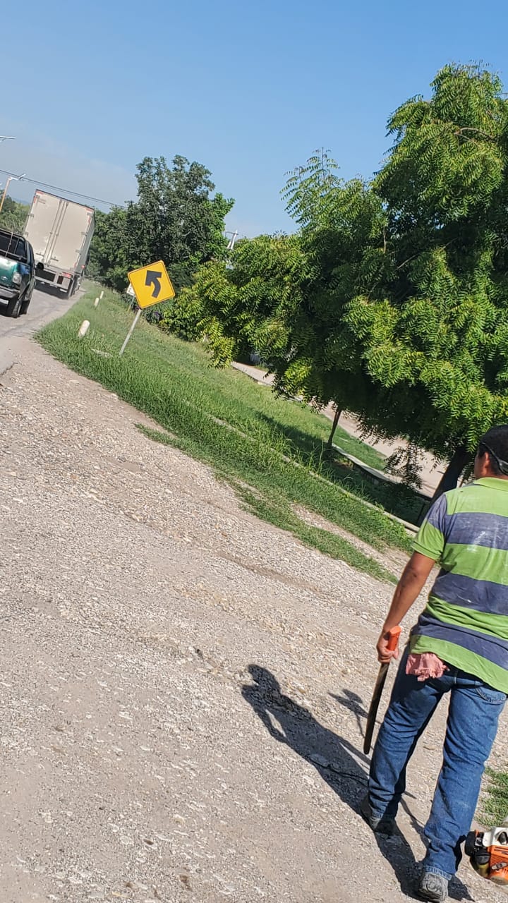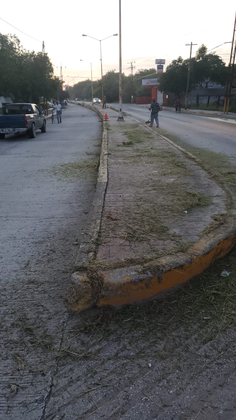 En la entrada al Municipio, correspondiente a la avenida Pedro Antonio Santos a la altura de la colonia Las Brisas, se está limpiando con chapoleo, recolección de basura y mantenimiento a la jardinería.