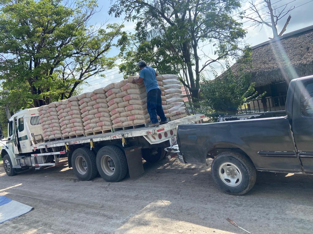 TamuinS.L.P.- Entregan una remesa de cemento a bajo costo para personas de la zona rural y urbana a través del Ayuntamiento y la Congregación Mariana Trinitaria.
