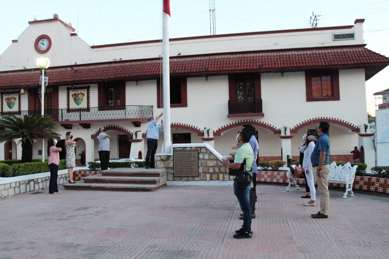 El presidente municipal David Armando Medina Salazar a temprana hora estuvo en la plaza principal donde participó en el izamiento a la bandera por del 108 Aniversario Luctuoso de Belisario Domínguez. Quien fuera asesinado el 7 de octubre de 1913. La bandera fue izada a media asta conmemorando este hecho.
