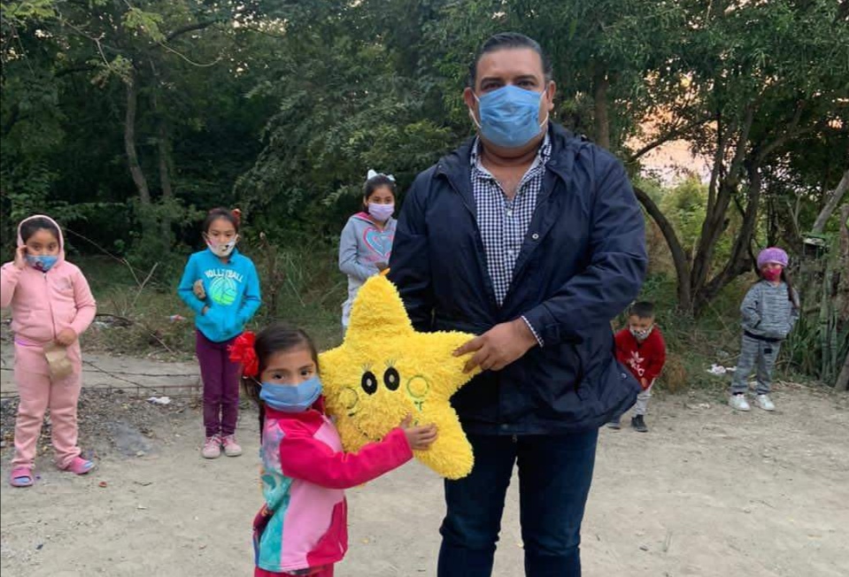 El presidente municipal interino José Guadalupe Contreras Pérez encabezó la entrega de juguetes y dulces a niños de escasos recursos en el Rally Navideño 2020.