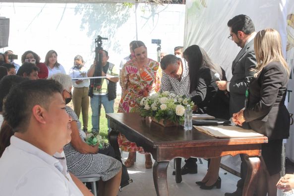 El alcalde David Medina hizo entrega de los documentos que avalan a cada una de las parejas.