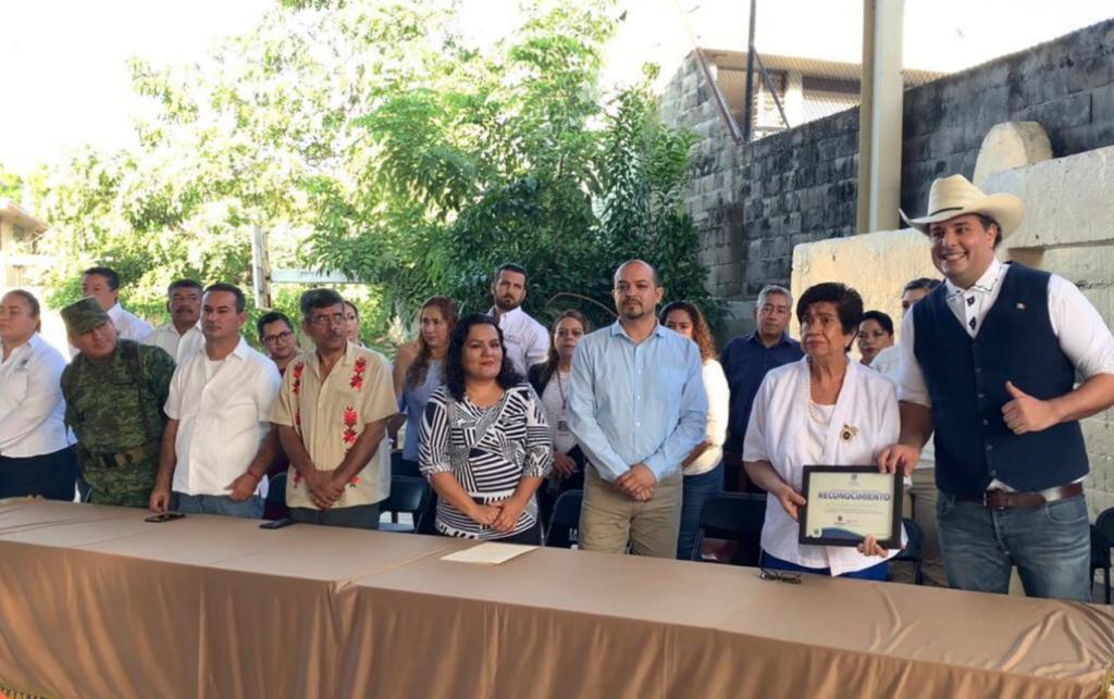 Ciudad Valles, SLP.- El alcalde independiente AdriĆ”n Esper CĆ”rdenas durante el homenaje a los sĆmbolos patrios en la escuela primaria āAntero G. GonzĆ”lezā, anunció el inicio de la campaƱa de reforestación masiva para el próximo 16 de noviembre.