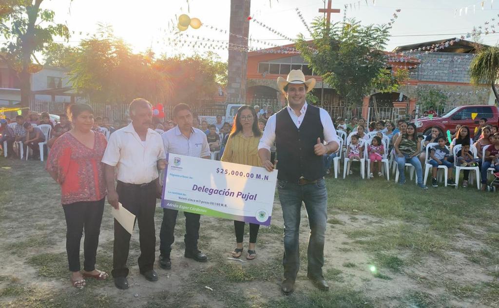 De manera simbólica Adrián Esper Cárdenas entregó un cheque por 25 mil pesos, correspondientes a un porcentaje de su sueldo y aguinaldo de este año, que será utilizado para adquirir una bomba para el sistema hidráulico.