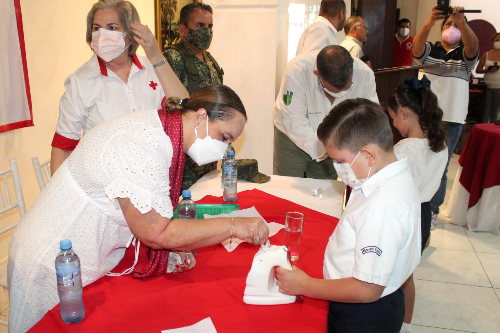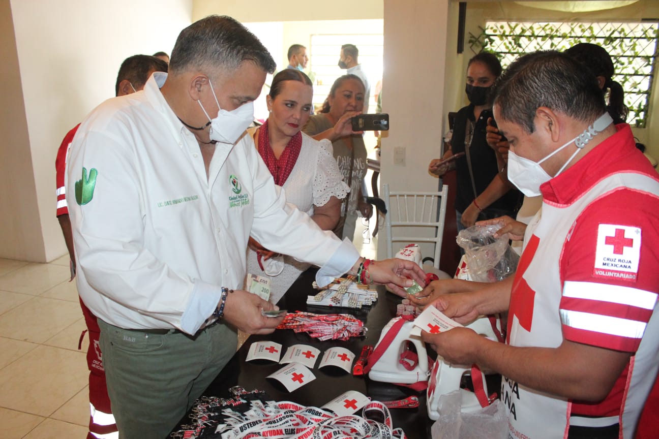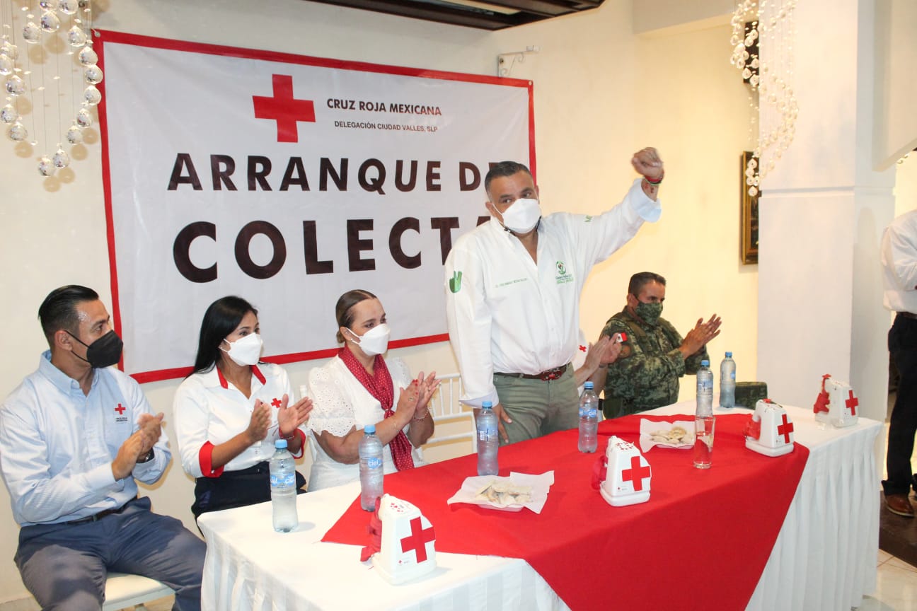 Acompañado de la Presidenta del SMDIF y también Presidenta Honoraria del grupo de Damas Voluntarias de la CRM en Ciudad Valles, Ena Avendaño Uscanga, el alcalde hizo el llamado a cooperar enfatizando que la Cruz Roja es una institución noble que no descansa y atiende de manera gratuita a quien lo necesita.