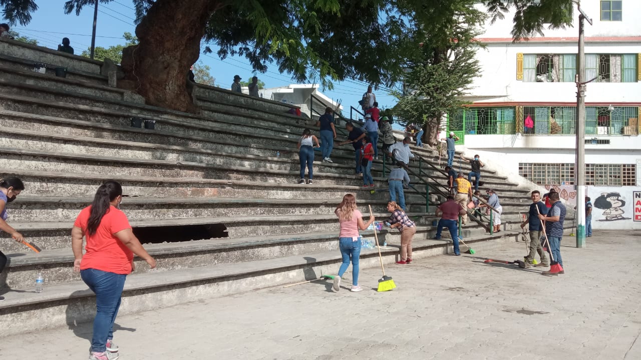El día de hoy apartir de las nueve de la mañana se realizó la rehabilitación del parque Rafael Curiel cómo instrucción del presidente municipal David Armando Medina Salazar quien a su vez trata de regresarle a la ciudadanía los espacios públicos ya que en las administraciones anteriores habían quedado en el olvido, dicho esto por la Licenciada Claudia Isabel Huerta Robledo Secretaria General del Ayuntamiento, además comentó que ya que es un espacio en el cual en temporadas de lluvias se inunda, esta actividad se va estar realizando por lo menos dos veces por año.
