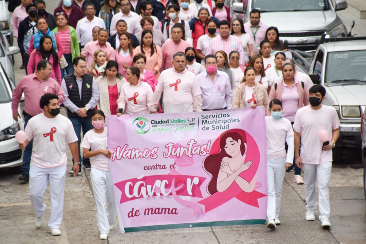 Ciudad Valles, S.L.P.- En el marco de la conmemoración del Día Mundial de la lucha contra el Cáncer de Mama, el presidente municipal David Armando Medina Salazar en compañía de la presidenta del SMDIF Ena Avendaño Uscanga, así como directivos del ayuntamiento y planteles educativos dieron inicio a una jornada de actividades para concientizar a la población sobre el cáncer de mama.