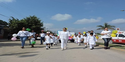 Con desfile por las principales calles, participando los niveles de pre-escolar, primaria y medio superior con carteles alusivos a la celebración.