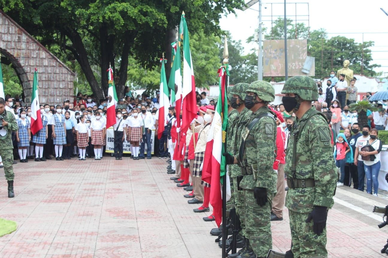 Fue con la lectura del acta de independencia a cargo de la Secretaria del Ayuntamiento Claudia Isabel Huerta Robledo y los honores a los sĂmbolos patrios, que se llevĂł a cabo el acto cĂvico donde algunas de las instituciones educativas que participarĂan en el desfile acudieron con sus escoltas, temiĂŠndose la participaciĂłn tambiĂŠn de autoridades civiles y militares.