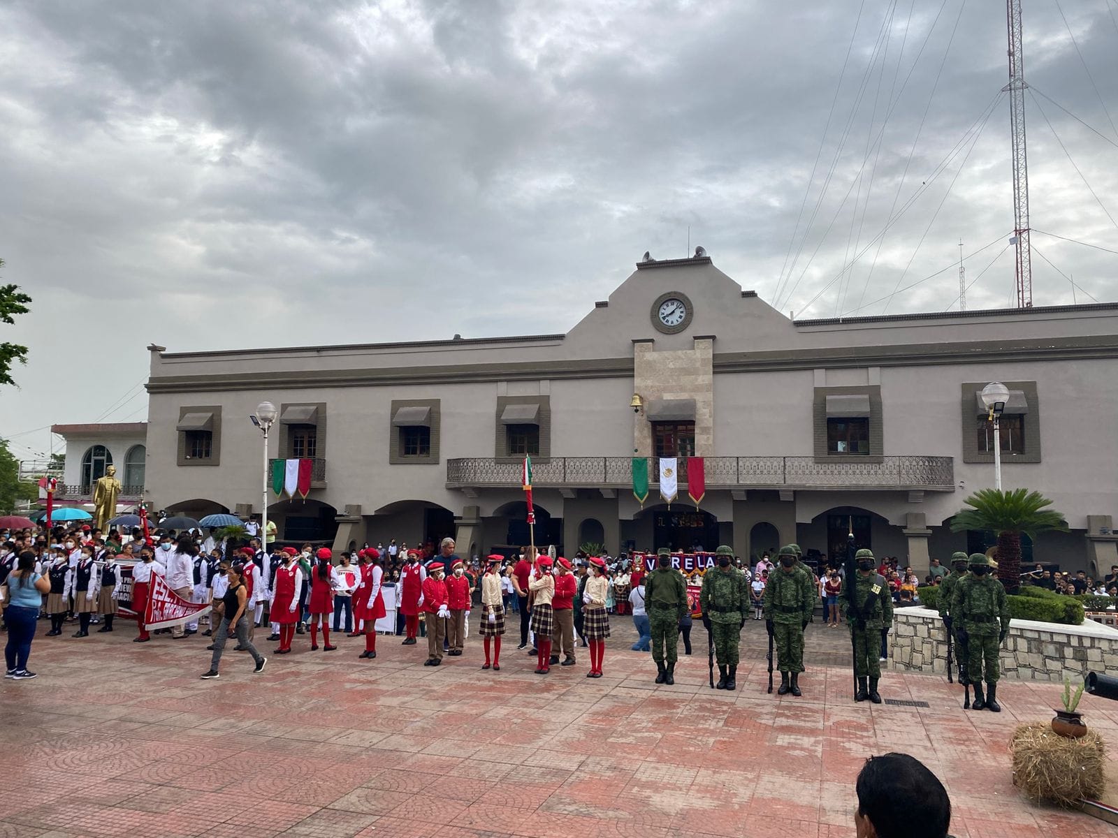 Ciudad Valles.S.L.P.- La maĂąana de este viernes en la Plaza Principal se llevĂł a cabo un acto cĂvico en conmemoraciĂłn del CCXII aniversario del inicio de independencia de MĂŠxico; actividad que se desarrollĂł fuera de agenda debido a la cancelaciĂłn del tradicional desfile, a consecuencia de un accidente a inmediaciones de la Glorieta a Hidalgo y las condiciones climĂĄticas que imperaban esta maĂąana en la ciudad.