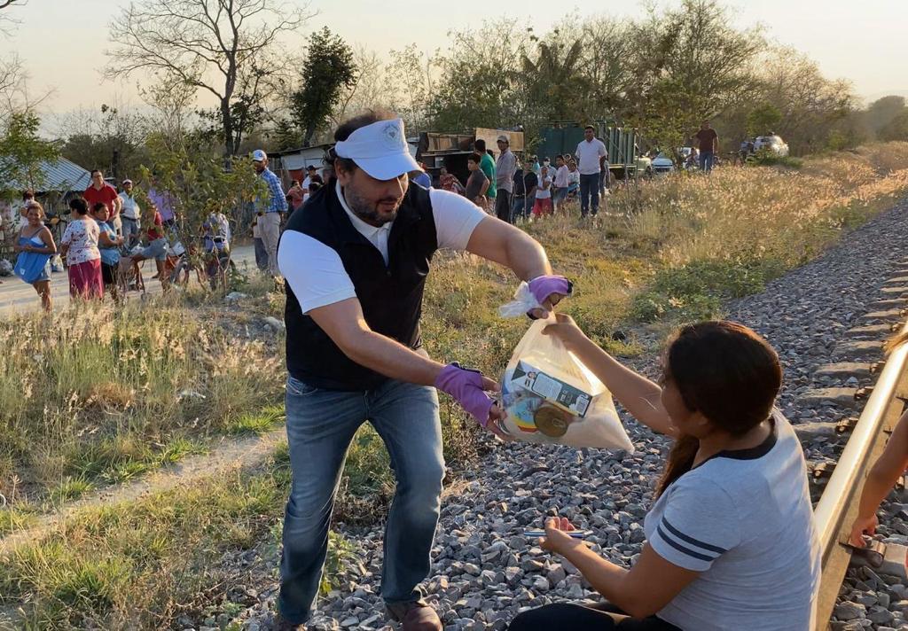 Ciudad Valles, SLP.- En el recorrido de hoy, el alcalde AdriĂĄn Esper CĂĄrdenas, visitĂł a las familias que habitan Palma Sola en derecho de vĂ­a, donde hizo entrega de apoyos de la canasta bĂĄsica y artĂ­culos de limpieza.