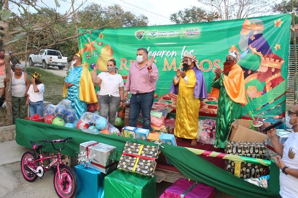 En este 6 de enero, las actividades iniciaron en el ejido Laguna del Mante, donde cientos de familias ya esperaban desde temprana hora la llegada de la caravana, que como ya se tenía anunciado llegó cargada con dulces, juguetes y la tradicional rosca de reyes.