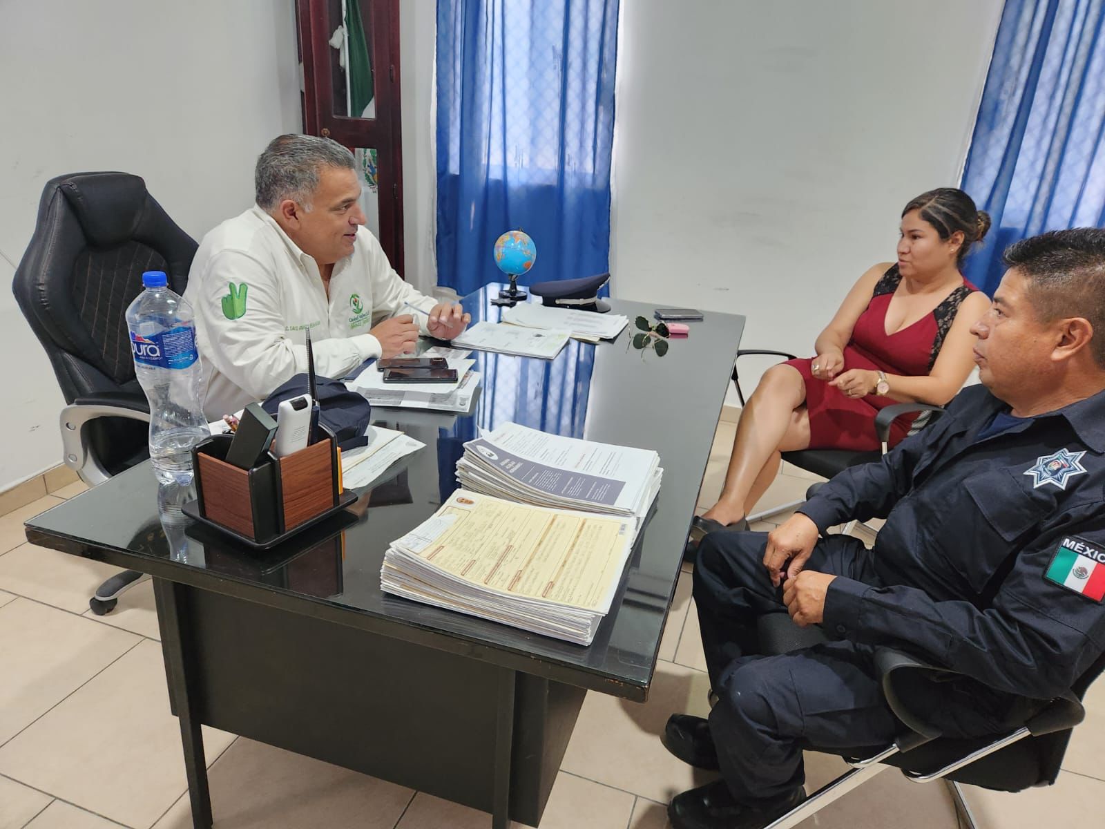 Acompañado de la Secretaría del Ayuntamiento Claudia Isabel Huerta Robledo, se plantearon tanto los puntos operativos como administrativos que conllevan el relevo dentro de la Policía Municipal, así como el tema de la contratación de personal, derivado de la renuncia voluntaria que presentaron 25 elementos en los últimos días.