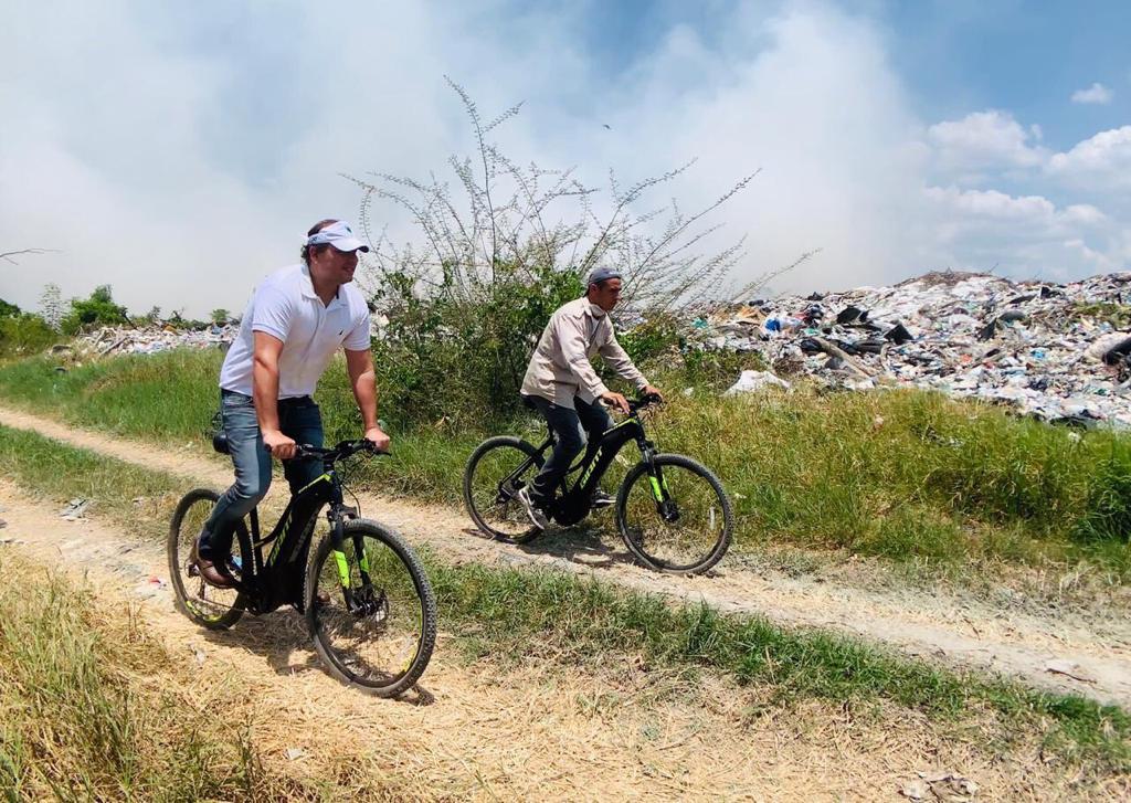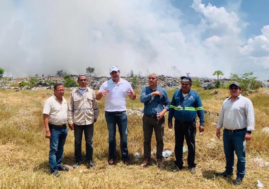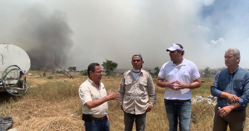 El presidente municipal Adrián Esper Cárdenas acudió a supervisar los trabajos de contención del incendio en el antiguo basurero municipal, que comenzó este martes y ya fue fue controlado.