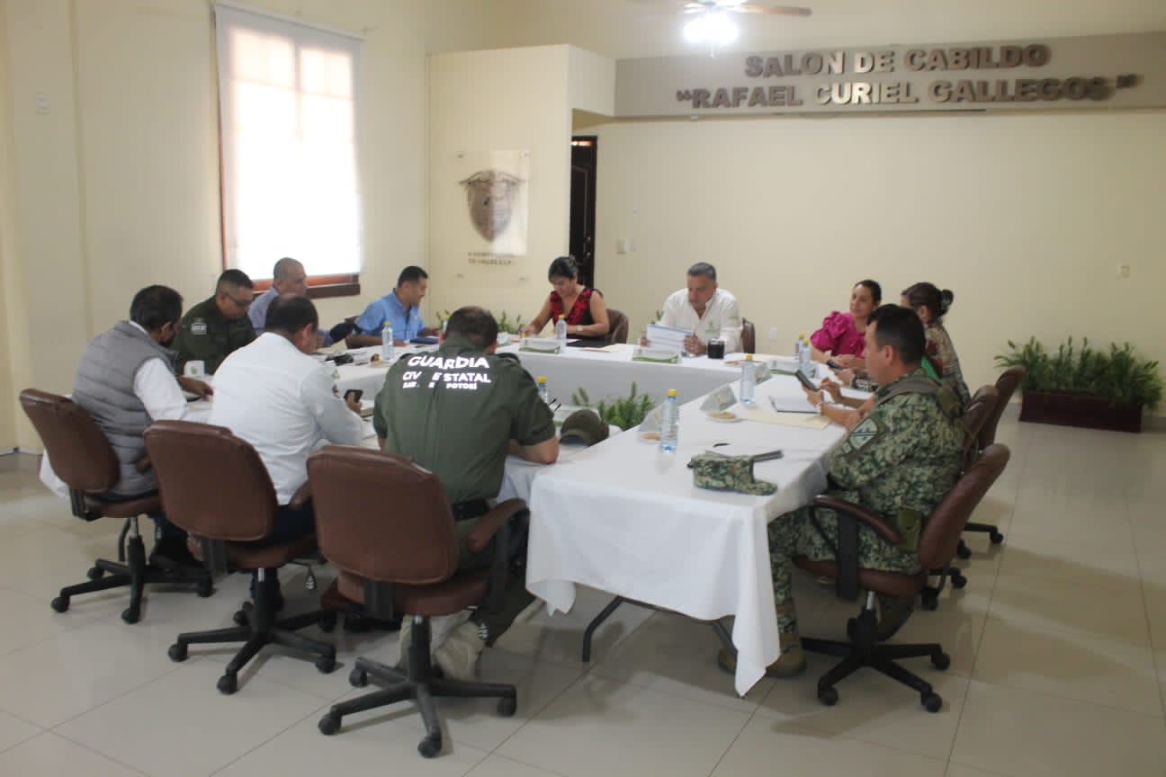 Esta mañana teniendo como recinto el Salón de Cabildo, se realizó la reunión del Consejo de Seguridad, con la presencia de diversas autoridades, tratándose temas relacionados con la vigilancia que se implementará en el próximo periodo vacacional y durante la Feria Nacional de la Huasteca Potosina.