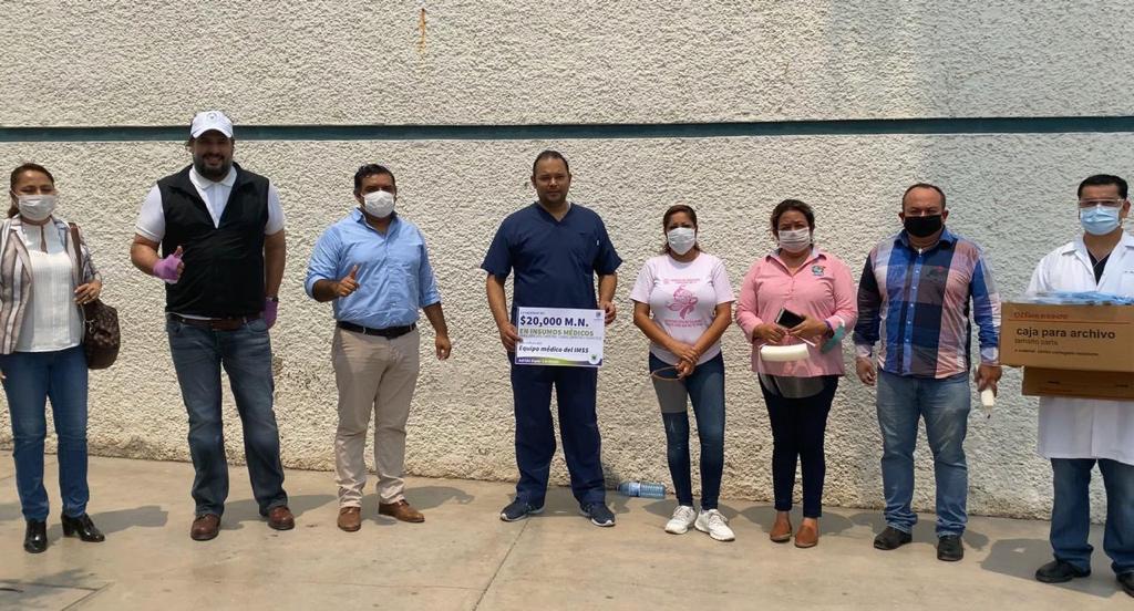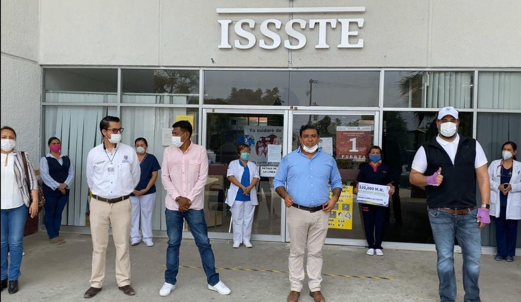 Adrián Esper Cárdenas acudió a las instalaciones del hospital del IMSS y del ISSSTE, en donde hizo la entrega de insumos con valor de 20 mil pesos, en cada uno de los centros médicos.