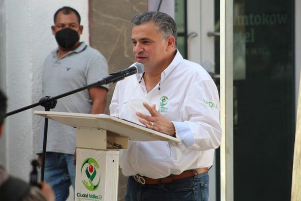 Ciudad Valles, SLP.- El presidente municipal de Ciudad Valles, David Armando Medina Salazar, acompañado de la presidenta del SMDIF, Ena Avendaño Uscanga fueron testigos de la entrega de una ambulancia nueva completamente equipada a la delegación local de la Cruz Roja.