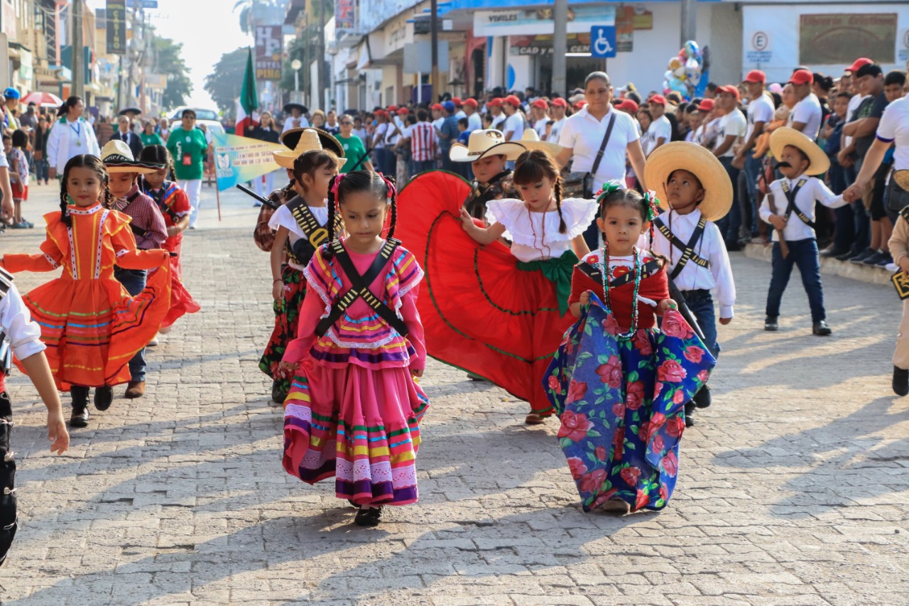 El colorido de las faldas y blusas, las trenzas, las carrilleras, tanto de hombres como mujeres, representan la lucha y el esfuerzo que hicieron miles de mexicanos por alcanzar metas que beneficiaron a las generaciones que les precedieron.